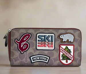 Coach C7204 Accordion Zip Phone Wallet Women’s Ski Patches Signature Canvas