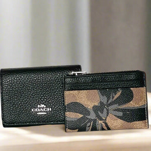 Coach Card Holder Double Mini Wallet Black Bow Signature Canvas CZ447 Small