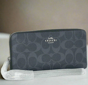 Coach Long Zip Phone Wallet C4452 Blue Canvas Leather Wristlet Silver HW