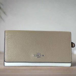 Coach Slim Trifold Leather Wallet Womens Sandy Beige CC816 Colorblock Billfold
