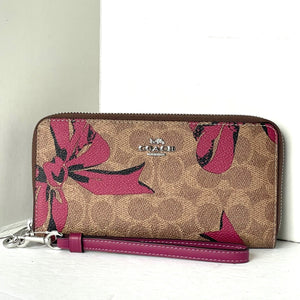 Coach Rosette Floral Long Zip Phone Wallet Wristlet Pink Canvas CZ329 Strap