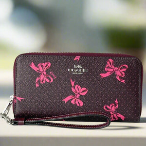Coach Pink Bow Long Zip Around Wallet Phone Wristlet Merlot Canvas CZ327