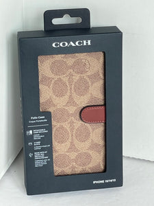 Coach iPhone 15/14/13 Folio Case Brown Signature Canvas Detachable Wallet