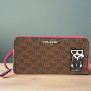 Karl Lagerfeld Slim Wallet Crossbody Brown Ikon Logo Zip Around Shoulder Bag Pink