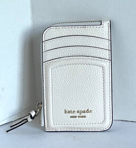 Kate Spade Knott Zip Card Wallet Womens Cream Leather Keyring Slim Zip Holder