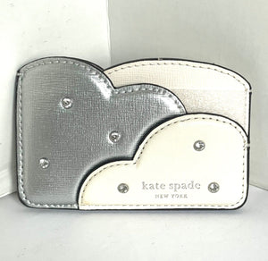Kate Spade Shade Cloud Card Holder Womens Silver Metallic Leather Crystals Small