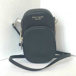 Kate Spade Spencer North South Phone Crossbody Black Leather Double Zip