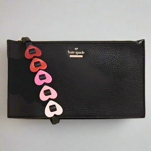 Kate Spade Ariah Heart Strap Wristlet Small Black Leather Slim Zip Clutch Wallet