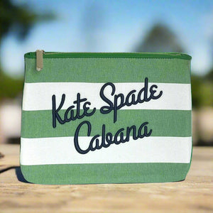Kate Spade Cabana Clutch Pouch Canvas Zip Green Stripe Medium Cosmetic Bag