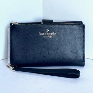 Kate Spade Staci Phone Wallet Wristlet Womens Black Leather ID Credit Card