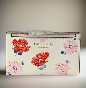 Kate Spade Morgan Floral Slim Bifold Wallet ID Womens Dotty Leather White ORGPKG