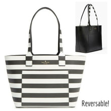 - Reversible Tote; Stripes B/W one side & Solid Black on the other.