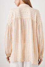 The Clio Top features pale-orange-and-blue stripes, as well as shirring at the drop shoulder and cuff for a simple yet forward look with an oversized fit.