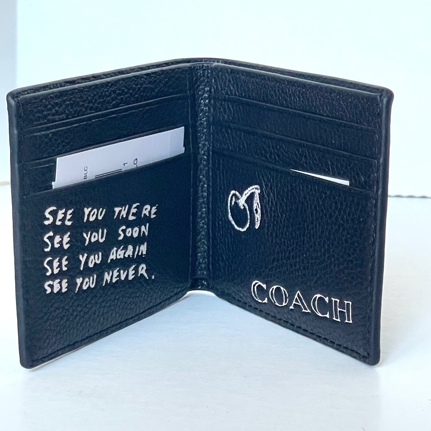 Coach Slim Billfold Wallet Sketch Print Doodle CAO21 Black Leather Mens