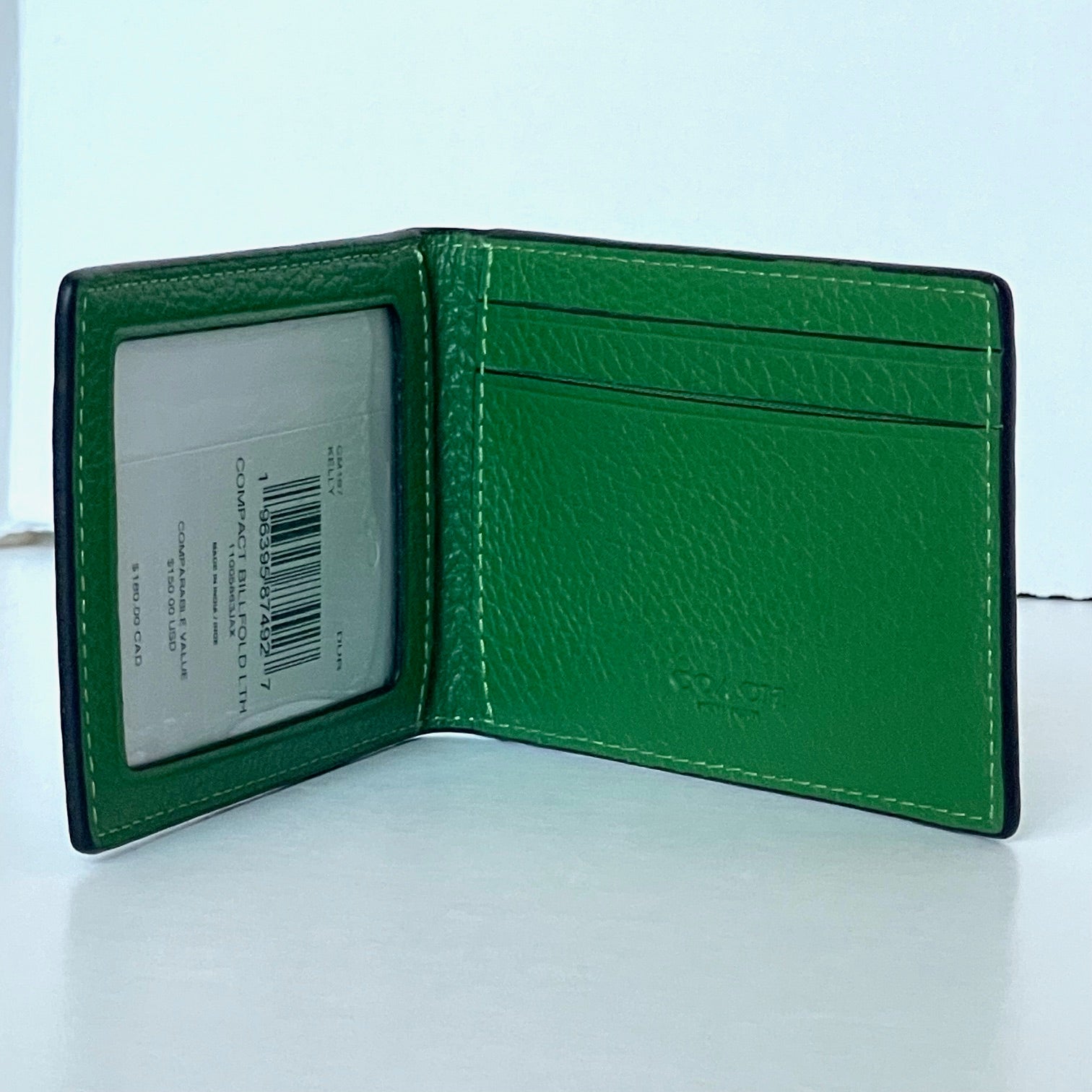 Coach Compact Billfold ID Wallet Mens Kelly Green Slim Leather Bifold CM167