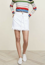 Frame Le High Belted Frayed Fringe Hem White Denim Mini Skirt, Blanc - 28 - Luxe Fashion Finds