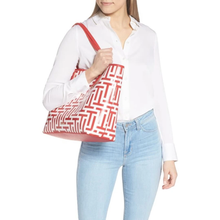 Large Ts profile a roomy shopper tote cut from glossy coated twill that can stand up to your fast and stylish lifestyle. Saffiano trim, polished hardware and a detachable zip pouch complete the work-to-weekend bag.