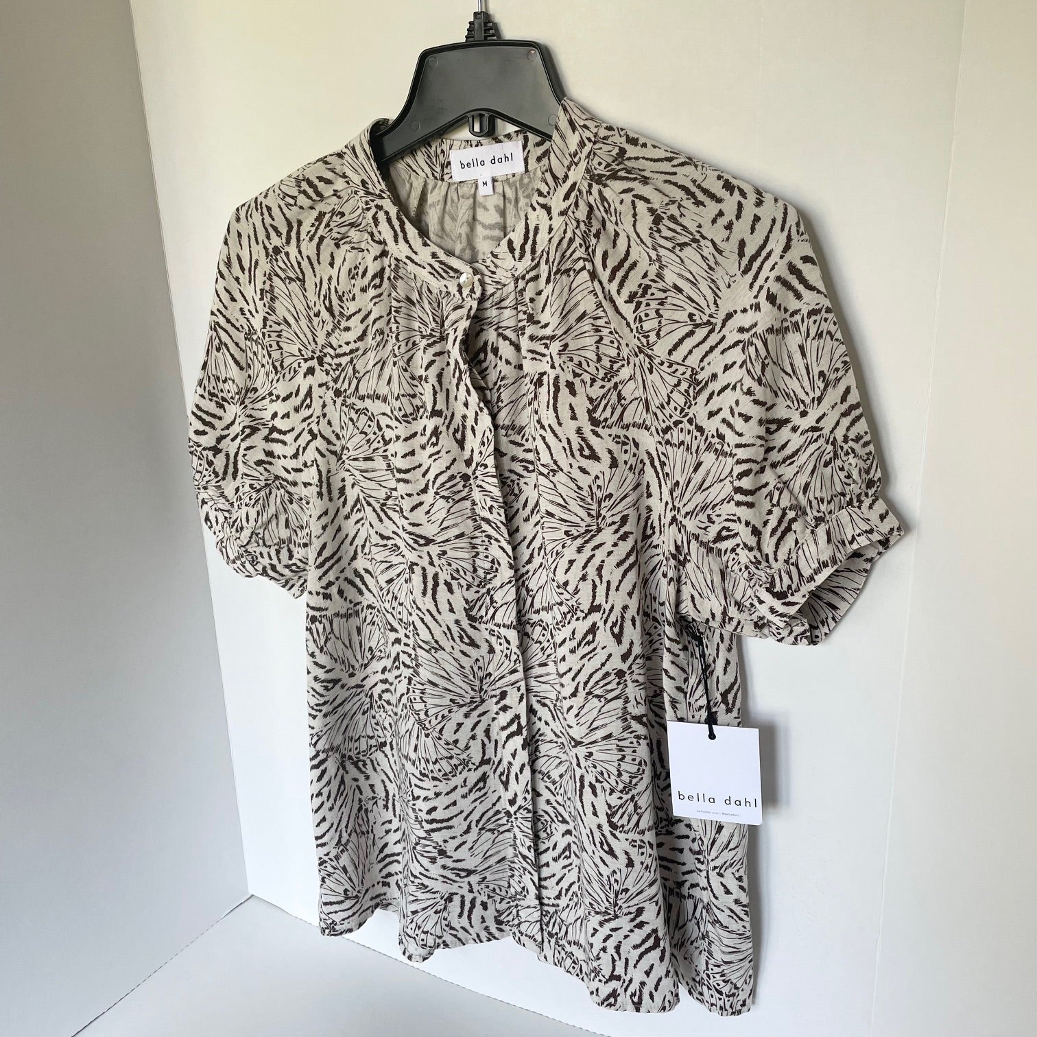 Your next destination vacation is calling...The Short Sleeve Raglan Shirt in Brown subtle animal print is a laidback yet refined take on a true summer classic.